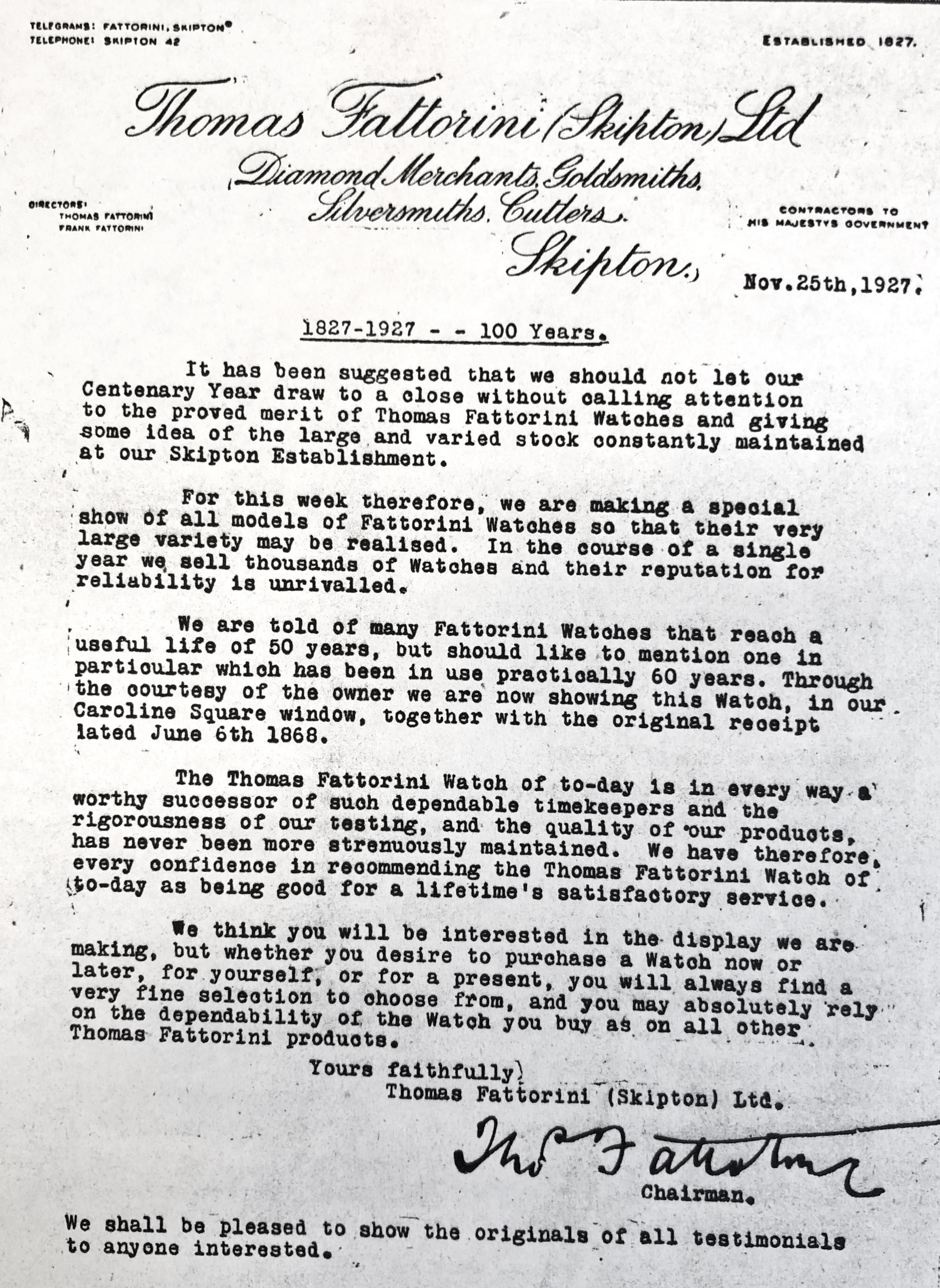 1927 TF Centenary letter
